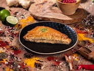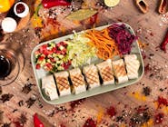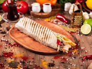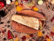 pieczone mięso (wołowina 200g, kurczak 220g, mieszany 220g), ciasto lawasz, surówka, sos -