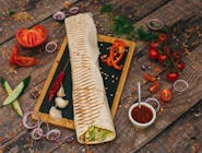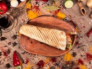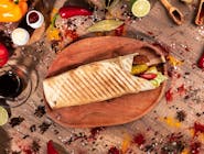 pieczone mięso (wołowina 160g, kurczak 180g, mieszany 180g), ciasto lawasz, surówka, sos -