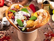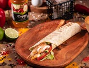 z pieczonym mięsem z kurczaka, pełnoziarnistą pitą, surówką i sosem o obniżonej zawartości tłuszczu -