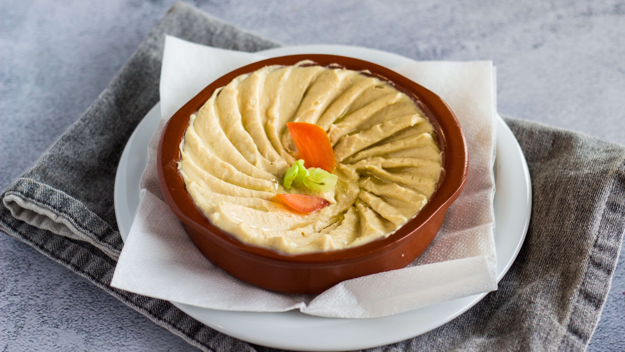 z hummusem, bakłażanem z jogurtem i sałatką coban -